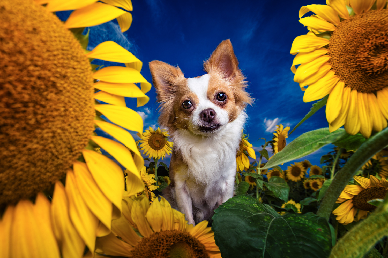 You need to capture eye contact—especially those big, soulful eyes. Certain angles work wonders, and incorporating bold primary colors can enhance the connection. The dog’s body language is crucial; dogs are very expressive. If their ears are pinned back, their eyes wide, or there’s tension in their lips, the viewer might feel that the dog is scared—or worse, that the dog is scary. You have to photograph the dogs when they’re looking comfortable, with a soft expression, ears up, gentle eyes, a relaxed mouth, and peaceful body language. Sometimes it takes as many as ten trips outside to ensure they’re relaxed and comfortable with you and the gear. For a dog, a camera is a big, mysterious black box that covers your face, making it hard for them to read your expression. Dogs don't have the same strength of the sense of object permanence that humans do—when you pick up a camera and disappear, the dog can't always understand why. They get tense, and you can see it in their body language. I often see this in the work of newer pet photographers who haven’t yet learned how to read that language.