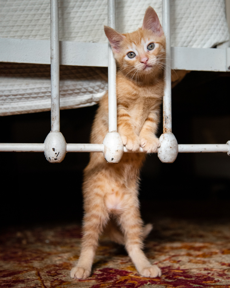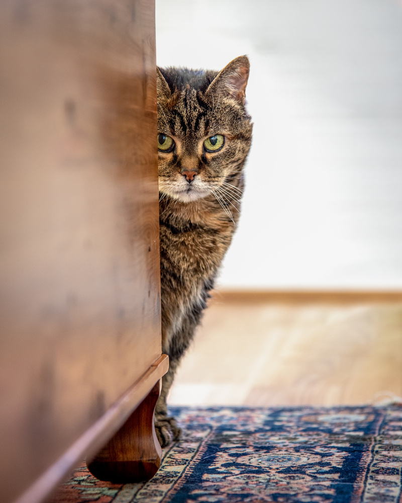 Mewlius Caesar and his feline ilk will frustrate you by doing cute things in front of cruddy backgrounds. Low depth of field is man’s best friend. Use a long lens and open it up to optimize background softness—blur out chair legs, cat trees, heaps of recycling, or what-have-you.