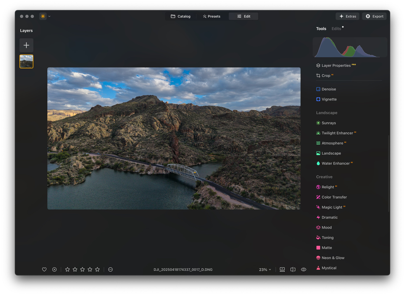This is an incremental improvement to an already powerful program. Of course, Adobe is really moving into AI in a big way, but Skylum got there first and still has superior sky replacement (with water reflections) and some excellent lighting tools like the Twilight Enhancer and Water Enhancer, which are better than what Photoshop can do. I do think Adobe is better at using AI to remove and create parts of an image. And of course, Adobe is still the big dog with a universe of features. Still, I find that for landscape edits, I can often just use Neo and get excellent results. And all these editors are moving targets, with frequent updates and new features being revealed. Also, ON1 PhotoRaw has become a very powerful editor with sophisticated tools along with many powerful AI features. Affinity Photo is also gaining fans.