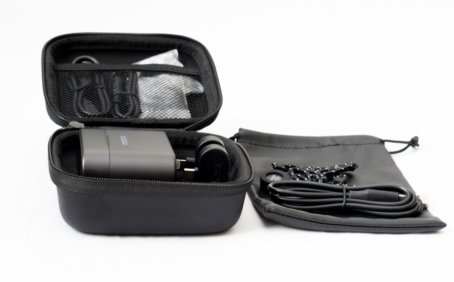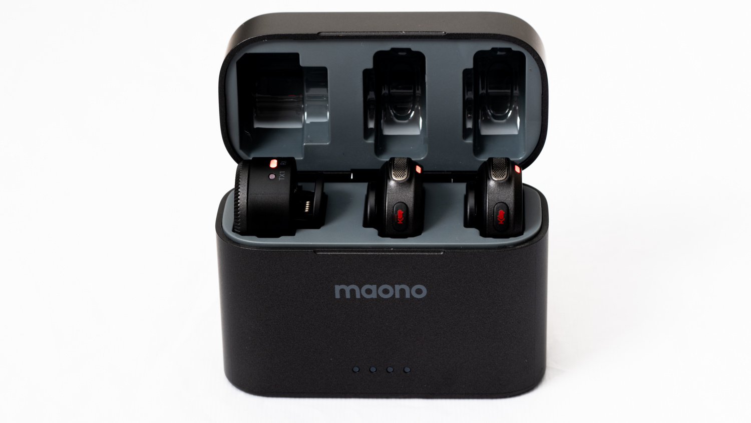 There are stickers on the charging ports of the mic transmitters and the receivers, and these need to be removed before you charge the devices in the case. The transmitters can only be charged by the case’s internal battery, but the powered receiver can also be charged via its USB-C port.