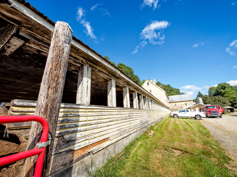 By the end of the project, the money required to cover half the restoration costs had been raised, with the farm owners matching this with an equal amount of their own money. The project paid for the replacement and repair of the sills, joists, and purlins in several parts of the barn, as well as the rebuilding of the bridge into the upper part of the barn. Clapboards were replaced along the barn’s east wall, and the entire structure was repainted. Restoration work was also undertaken on the shop barn, an 18th-century building that may have been a horse barn. If you want to see how the Meacham Barn looks today following the restoration, there’s a nice slide show in this article from Farm Progress that shows the restored structure, hopefully ready to face another hundred years of Vermont winters.
