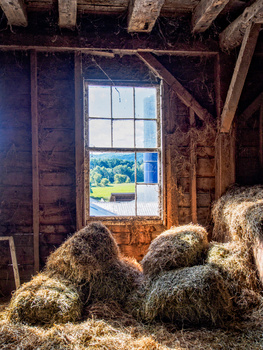 One of my first goals was to capture images of the barn from a perspective similar to that of the original 1936 FSA photograph taken by Arthur Rothstein. Rothstein’s photograph was captured in winter when there was snow on the ground, and although I could not reproduce that aspect of the photograph—shooting, as I was, in early fall—I could at least strive to capture the barn from a similar angle. In one of the images, I also wanted to combine Rothstein’s perspective with a tighter framing that would show more detail of the structure’s deterioration. In the first couple of images below, you can clearly see the toll that a century of Vermont’s harsh winters has taken on the barn’s exterior. In the third image, you can see that the surroundings of the barn have changed somewhat since the 1930s with regard to the trees and some of the adjacent structures, but the barn itself still looks very much as it did almost 90 years ago.I also wanted to capture the interior spaces of the barn to showcase the massive wood-framed structure that supported it. In addition to the exterior work needed to restore the barn, a significant amount of money was required to replace and repair many of the timbers that made up the load-bearing wooden frame, as well as the enclosed bridge leading into the upper part of the barn. From a photography perspective, these interior spaces have a very compelling and unique beauty of their own. Structures in the architectural style of the Meacham Barn are rarely built these days, which is one reason why preserving and maintaining them is so important. If you ever have the opportunity to photograph the inside of one of these old buildings, I wholeheartedly recommend the experience. The simple beauty of the massive wood frame around the expansive interior, the textures and warm tones of the wood, and the narrow light from the small windows create a quiet, contemplative kind of magic that makes these spaces a dream for a photographer.